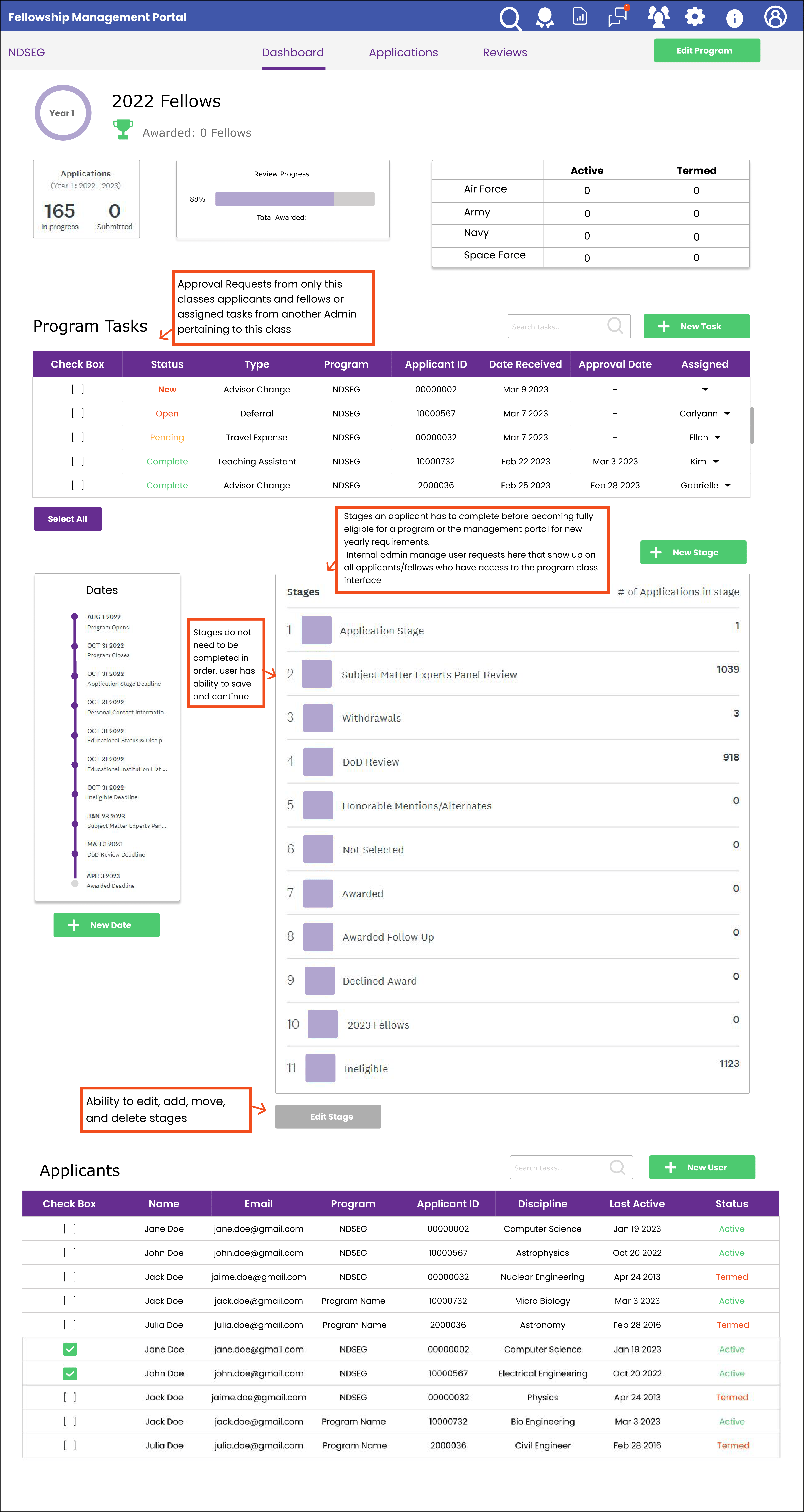 The NDSEG Fellowship program was running a federal application process for 70,000+ applicants through SurveyMonkey — a consumer survey tool with no case management, no role-based access, and no way to track the full applicant lifecycle. Program administrators were manually managing data across spreadsheets and email threads.
